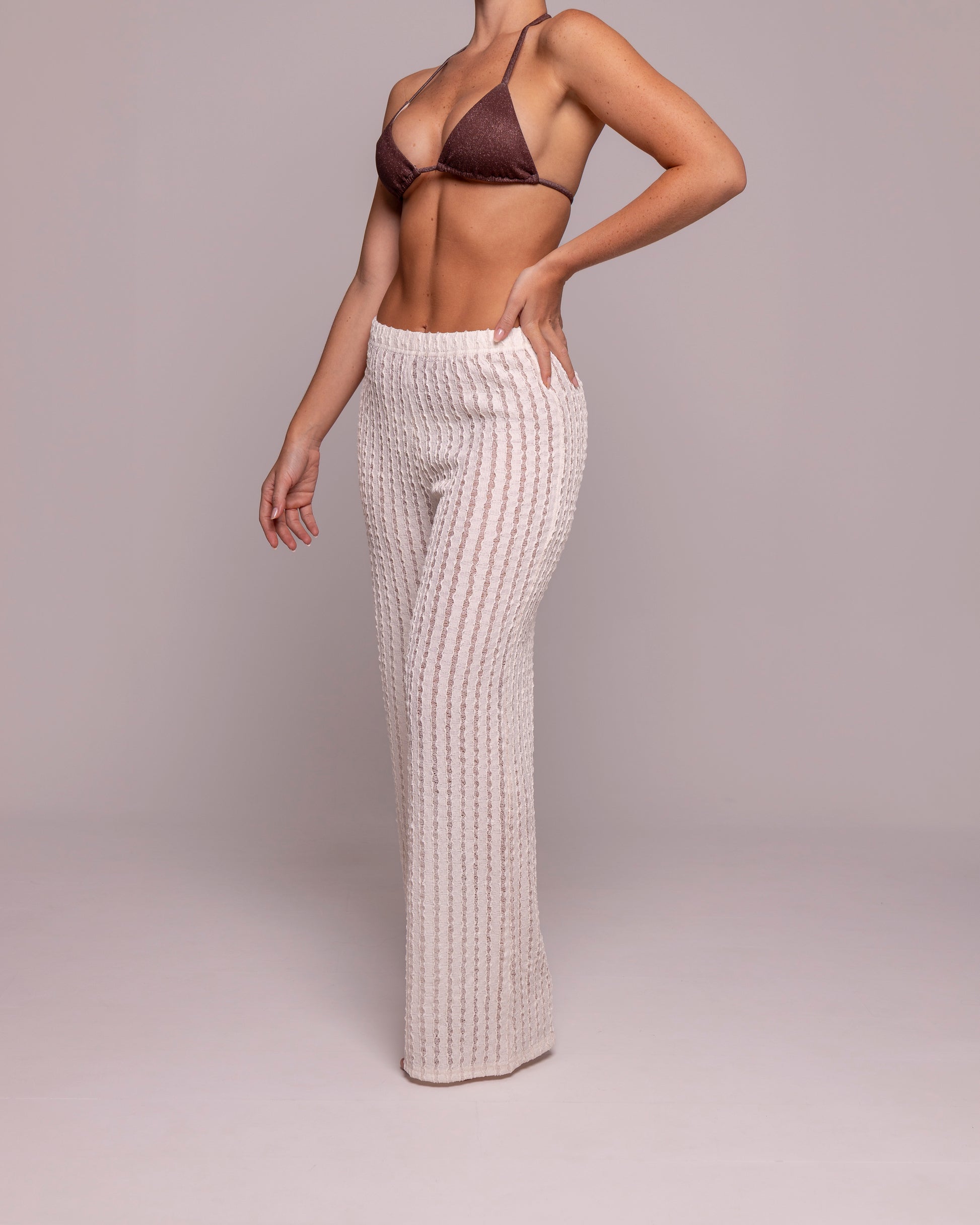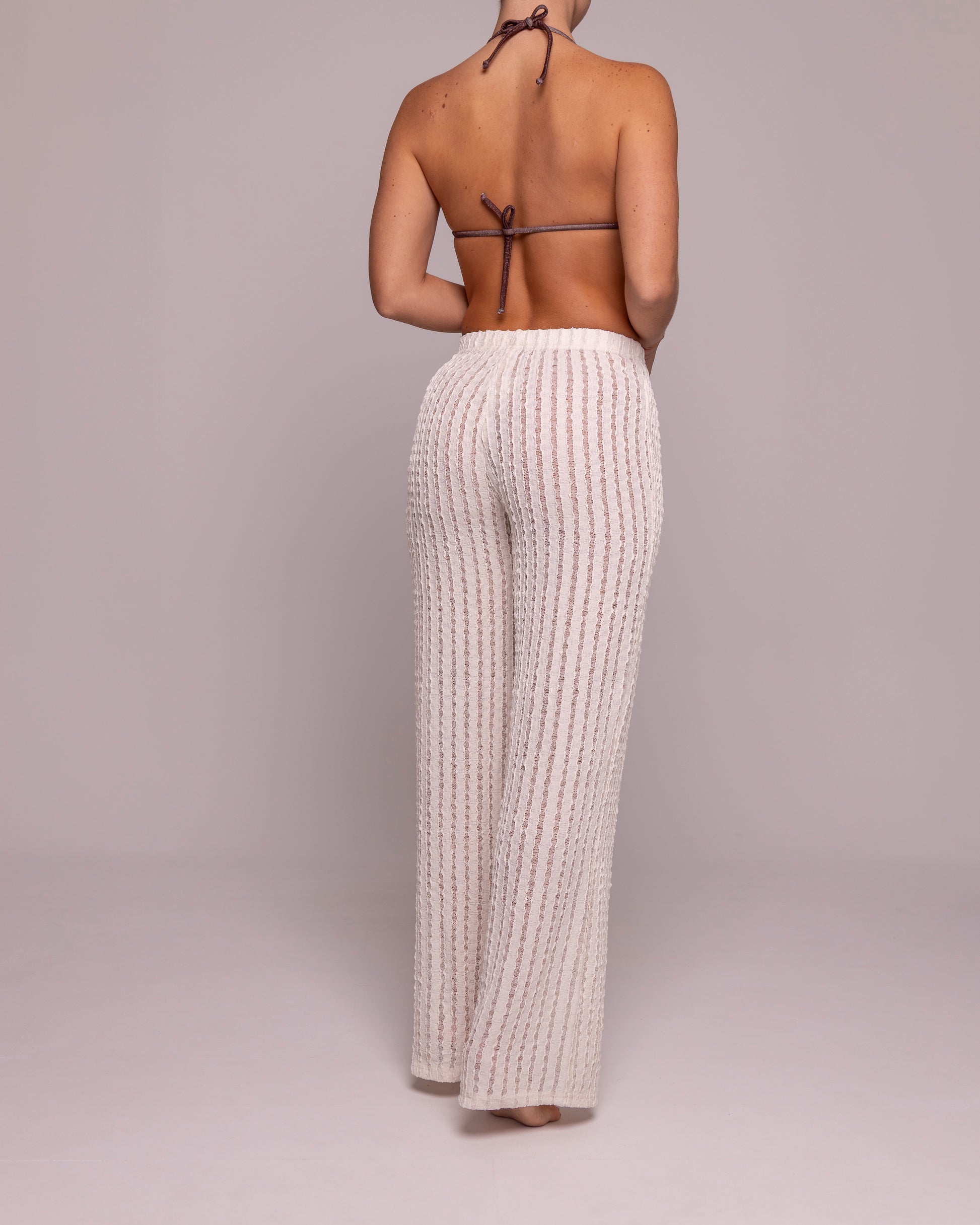 Pantalón con tela en textura. Perfecto para usar como salida de baño o como prenda exterior.